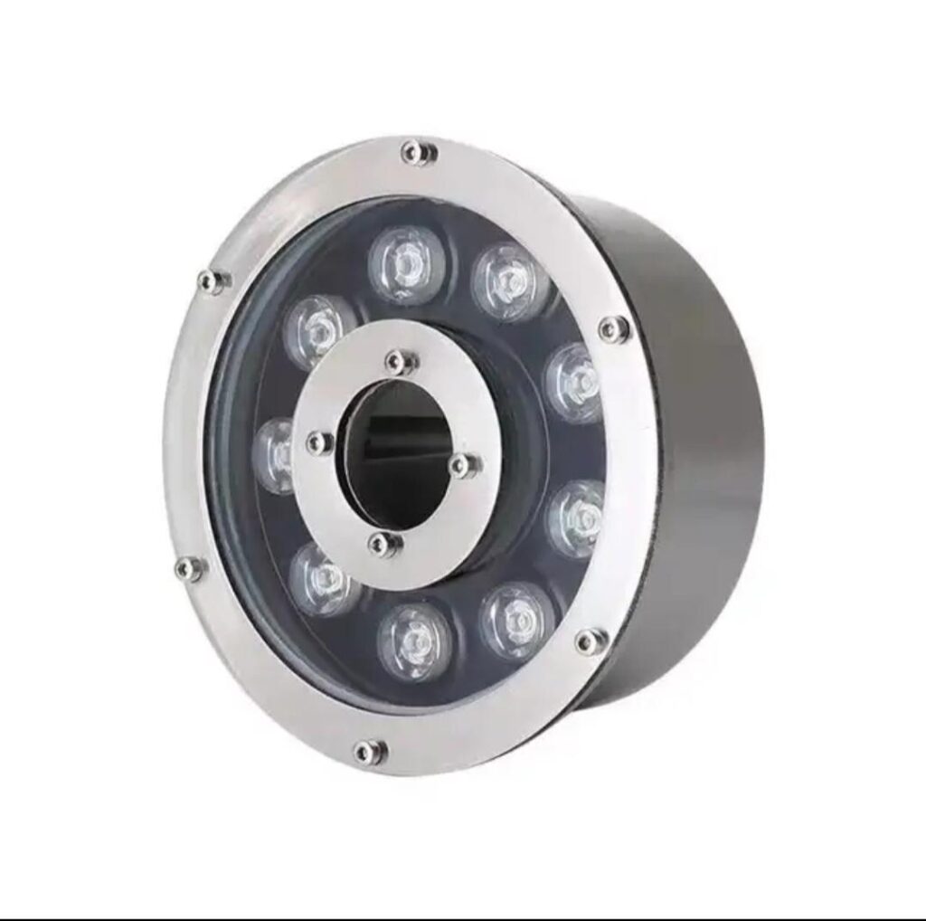 The LED Stainless Steel Fountain Light (Ring Type) is a heavy-duty underwater luminaire designed for fountains and water features where the fixture mounts around a nozzle or pipe through its center hole. Built with a stainless-steel face and fully sealed construction, it delivers bright, uniform illumination to highlight water jets and create clean architectural effects.