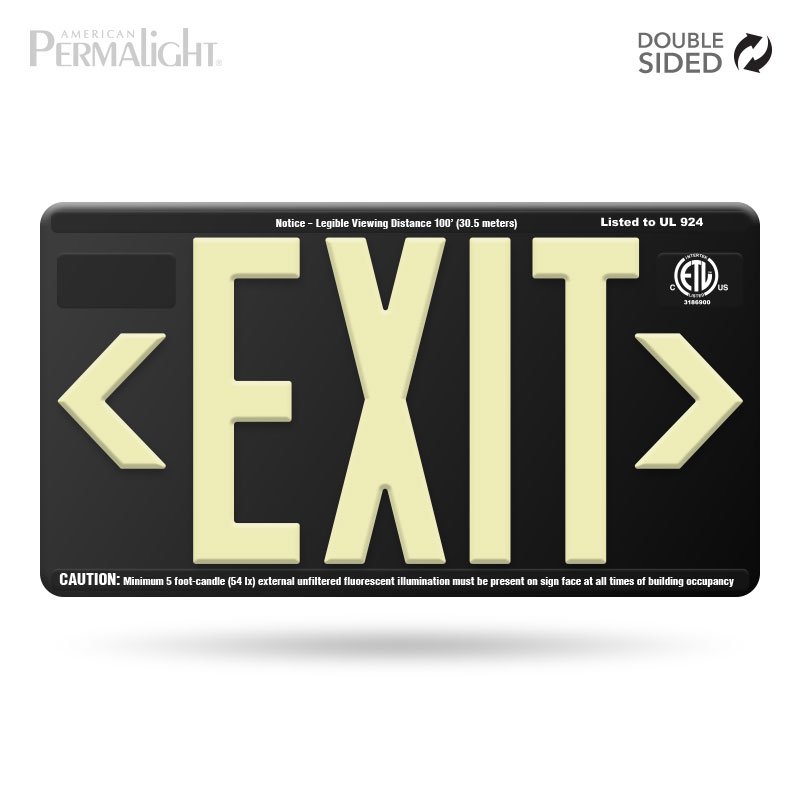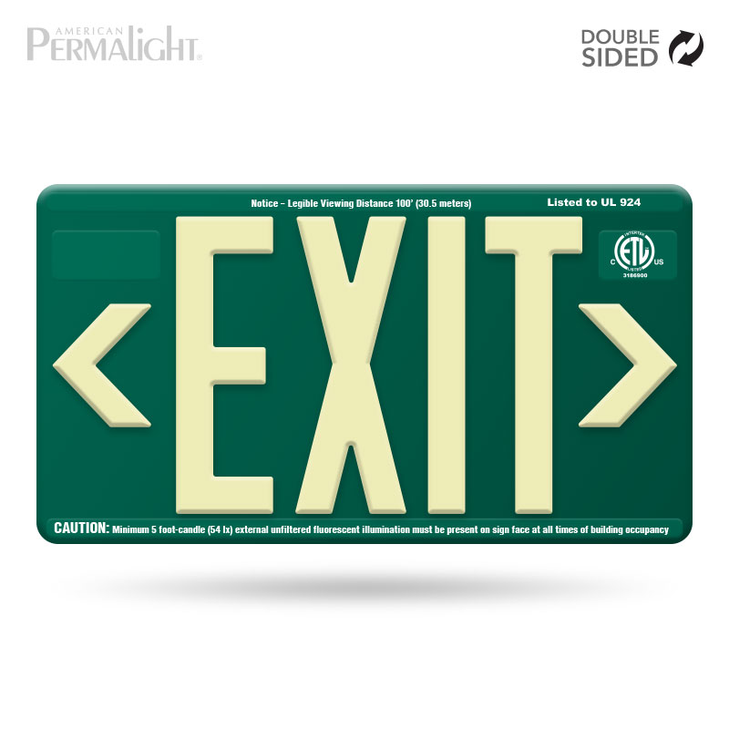 Outdoor / Wet Location Photoluminescent EXIT Sign – 100 ft (30m) Viewing Distance (LED + Fluorescent Activation, Mounting Hardware Included)